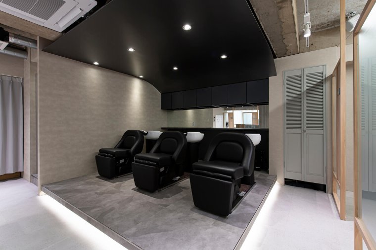 ・シャンプーエリアは“音と光”を落としたリラックス仕様